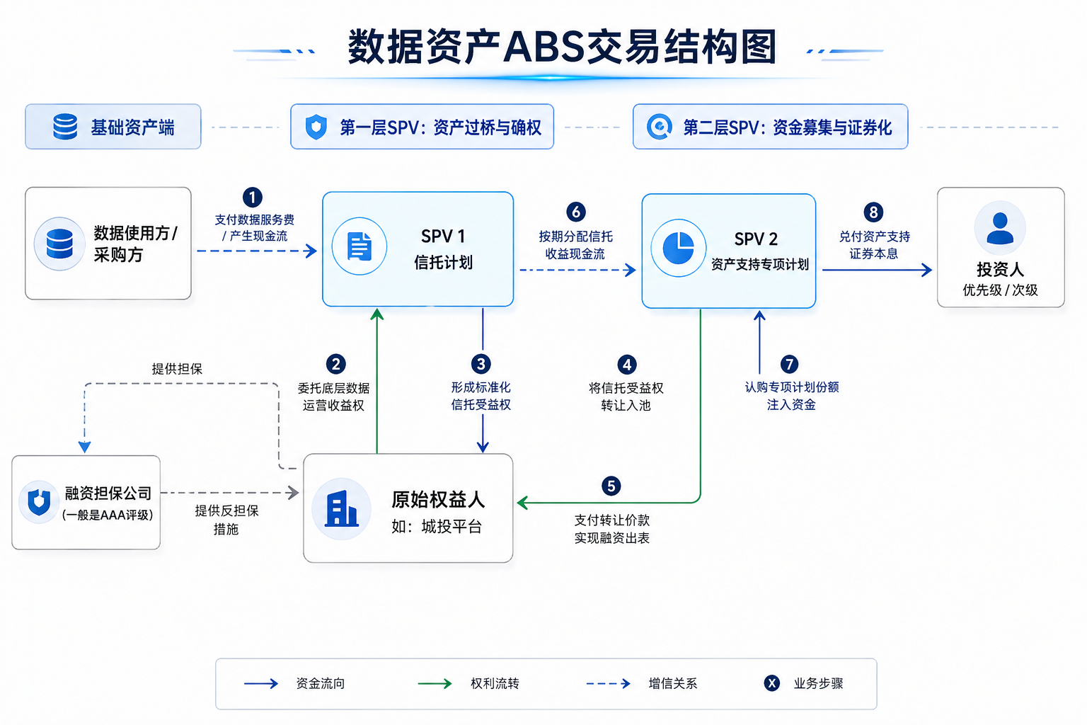 - 信用增强:通过信托资产的独立性,将原始权益人的主体信用与数据资产的资产信用进行有效切割,为后续ABS的发行提供更纯粹的信用基础。